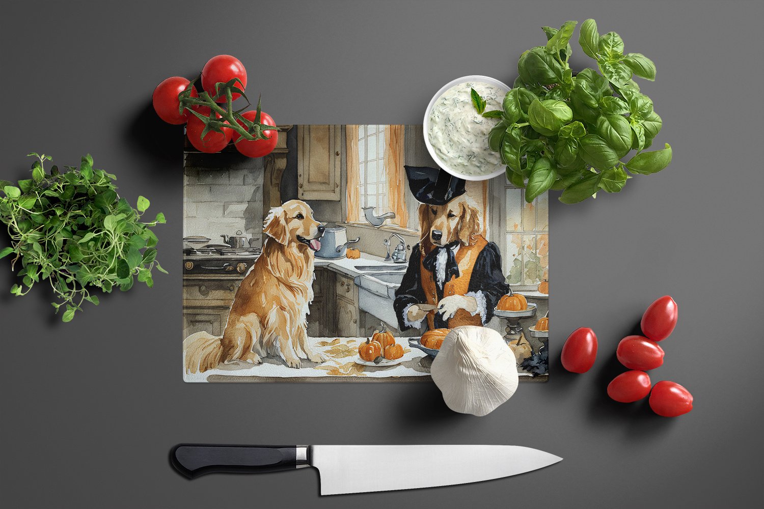 Home > Golden Retriever Fall Kitchen Pumpkins Glass Cutting Board Decorative Tempered Glass Kitchen Cutting and Serving Board Large Size Chopping Board