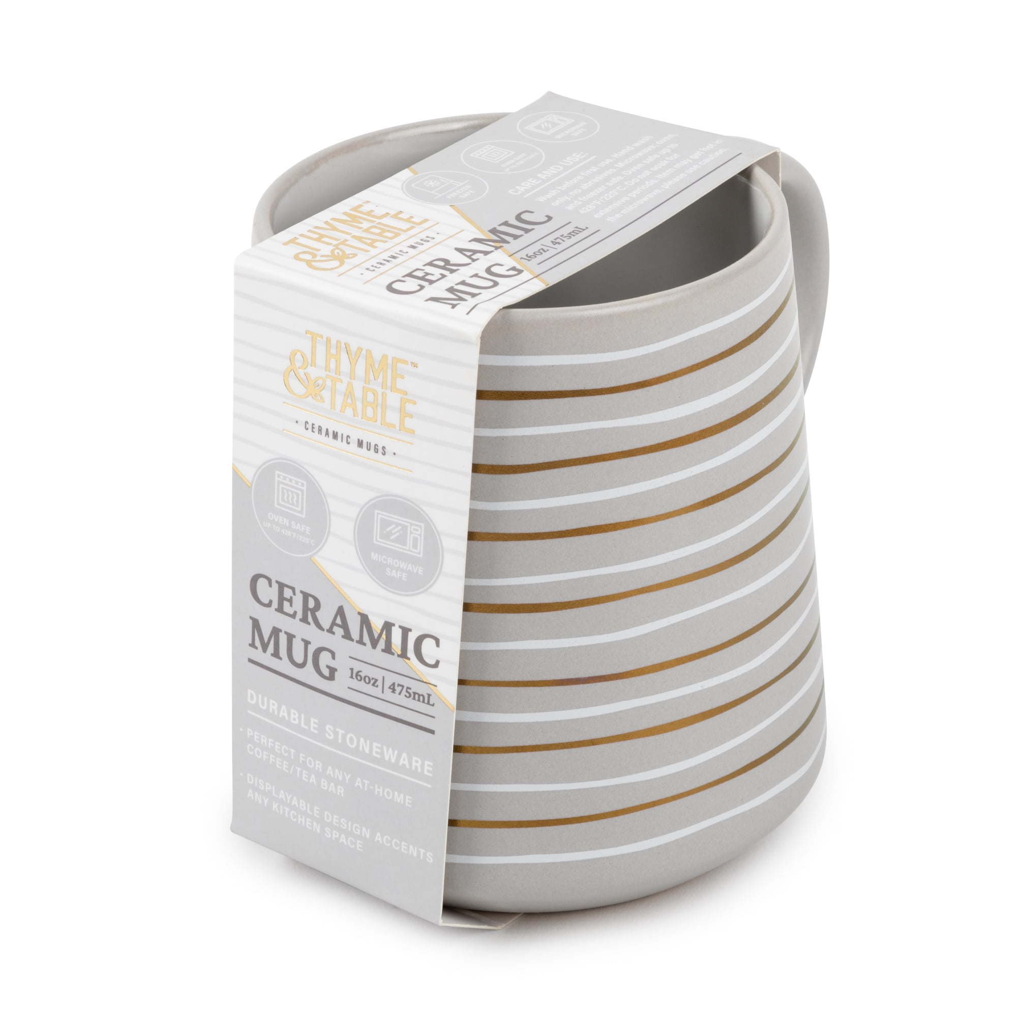 Thyme & Table Stoneware Mug, 16 fl oz, Gray Stripe is freezer safe, dishwasher safe, and made for everyday use. 16 fluid ounces is perfect for any at-home coffee and tea bar.